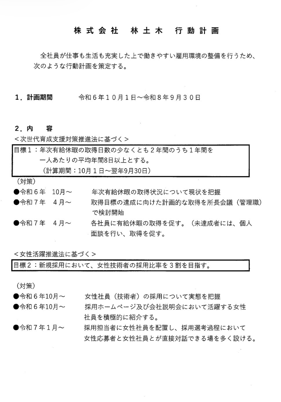 株式会社林土木は「次世代育成支援対策推進法」及び